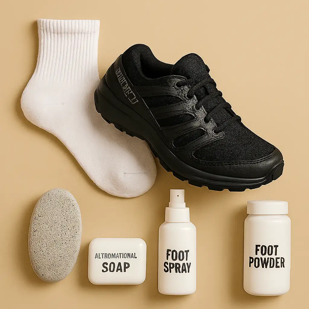 جلوگیری از رشد باکتریها: شامل استفاده از اسپری ضدباکتری یا پودر پا است، اما این کار به تنهایی کافی نیست و باید با کنترل رطوبت ترکیب شود. علاوه بر آن، شستوشوی روزانه پا با صابونهای ضدباکتری و استفاده منظم از سنگ پا برای حذف سلولهای مرده پوست میتواند محیط رشد باکتریها را کاهش دهد و به حفظ طراوت و خوشبویی کفش کمک کند.